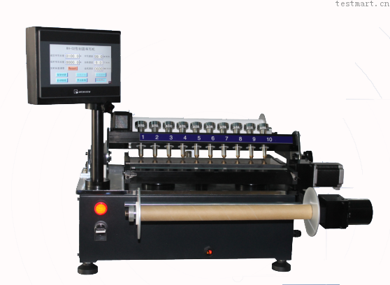 HM-7012划圆书写机 主要技术参数及特点: 1. 每次大检测笔芯支数:10 支 2. 笔芯自转速度:0-2 转/min 数字设定 3. 笔芯公转运动:每圈100mm 4. 书写速度:0-10m/min 数字设定 5. 走纸速度:0-1000mm/min 数字设定 6. 书写速度:60 - 90° 7. 书写长度:0-6000m 数字设定 8. 实时显示实际的划线长度 9. 达到预定书写长度后笔架自动抬起 10. 自动收纸功能!