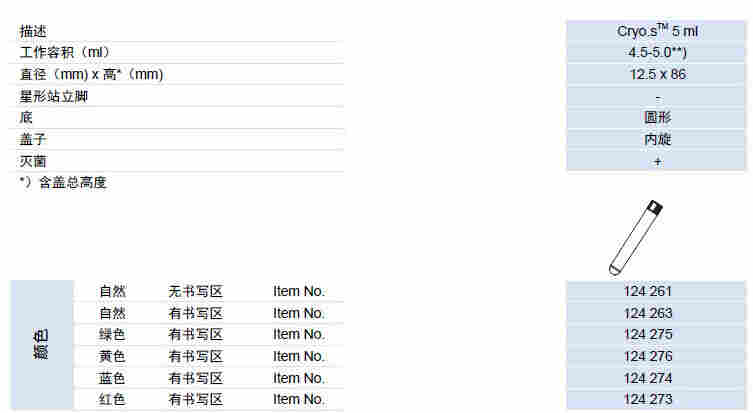 体)、DNA、RNA和蛋白样品。Cryo.s TM 产品用聚丙烯制作,具有高耐热性,可在-196°C — +121°C温度范围内使用。