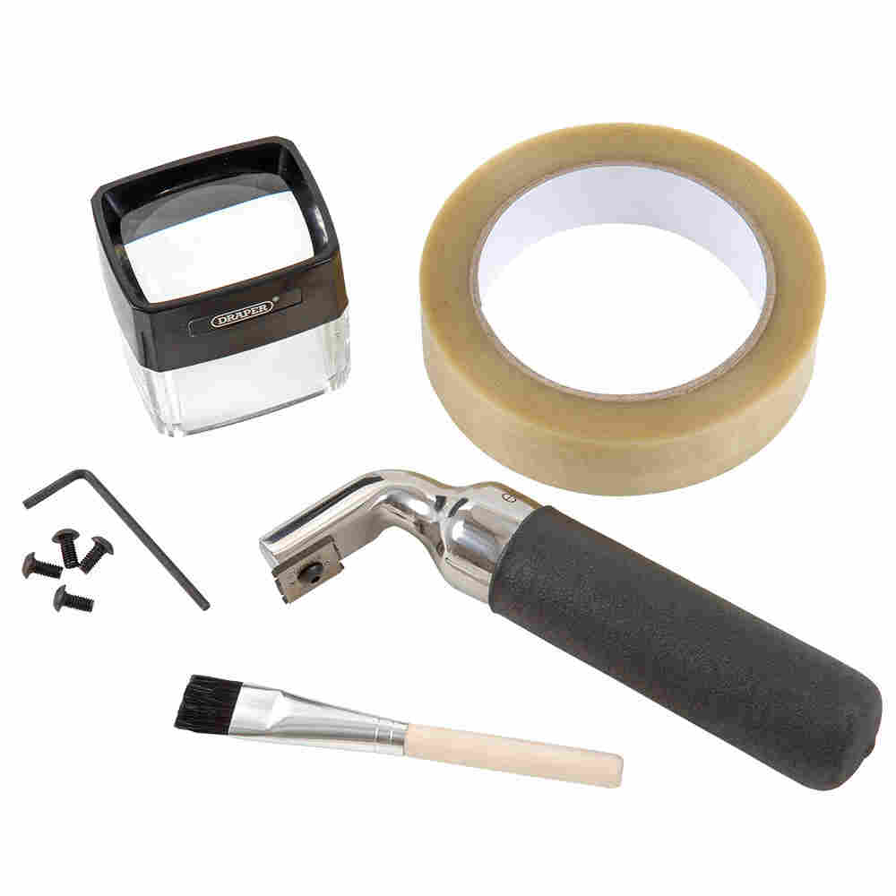 完 整套: 坚固手柄, 刀片, 六角扳钳, 操作手册(含附着力测试结果图表等级), 目视镜, 刷子和附