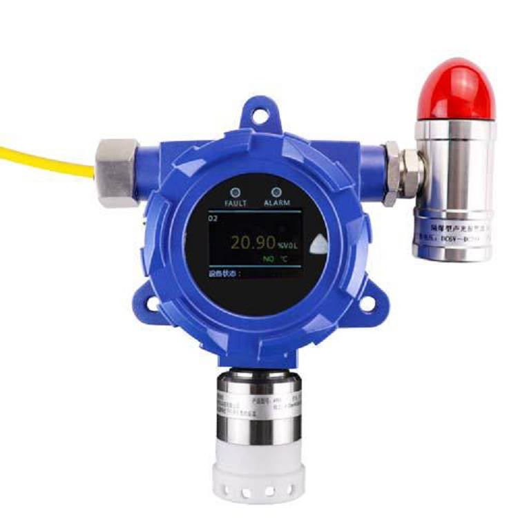 分析仪中的用量大的一款。它可以同时具有现场检测氧气浓度显示、信号变送、led 灯和继电器报警功能。在线式氧气分析仪工作原理是将现场检测到的氧气气体浓度,转换为对应的标准信号(如电压信号(如0-5/10V)、电流信号(如 4-20mA)、标准数字信号(如总线 RS-485、RS232)、频率信号、Hart 协议信号,然后将信号变送到 PLC、DCS、报警控制主机等上位机进行统一显示、管理和控制。在线式氧气分析仪内部带有 1 个继电器(开关量信号),可以控制风机、声光报警器、电磁阀等设备。