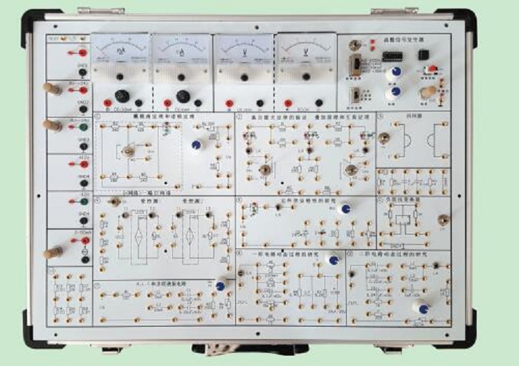 由铝木合金材料制作箱体,无任何污染源,箱体内含直流稳压工作电源、实验用恒流源和恒压源、测量用直流电流表、直流电压表、实验电路模块区等组成。