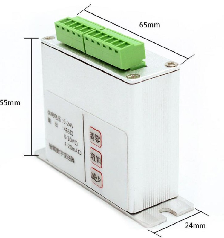 变送器供电电压为直流12-26V功耗<3W。外接智能传感器,供电电压5V。数据采集精度12-16位(与采样速度有关)。通讯采样RS485-ModbusRTU协议,通讯速率1200-115200bps;通过,上位机可以读取实时测量值,实现清零、、参数修改等操作模拟输出0-10V或者4-20mA,负载分别为大于1k和小于500欧。自动校准功能。配合本公司带有TEDS功能的传感器可以实现自动校准