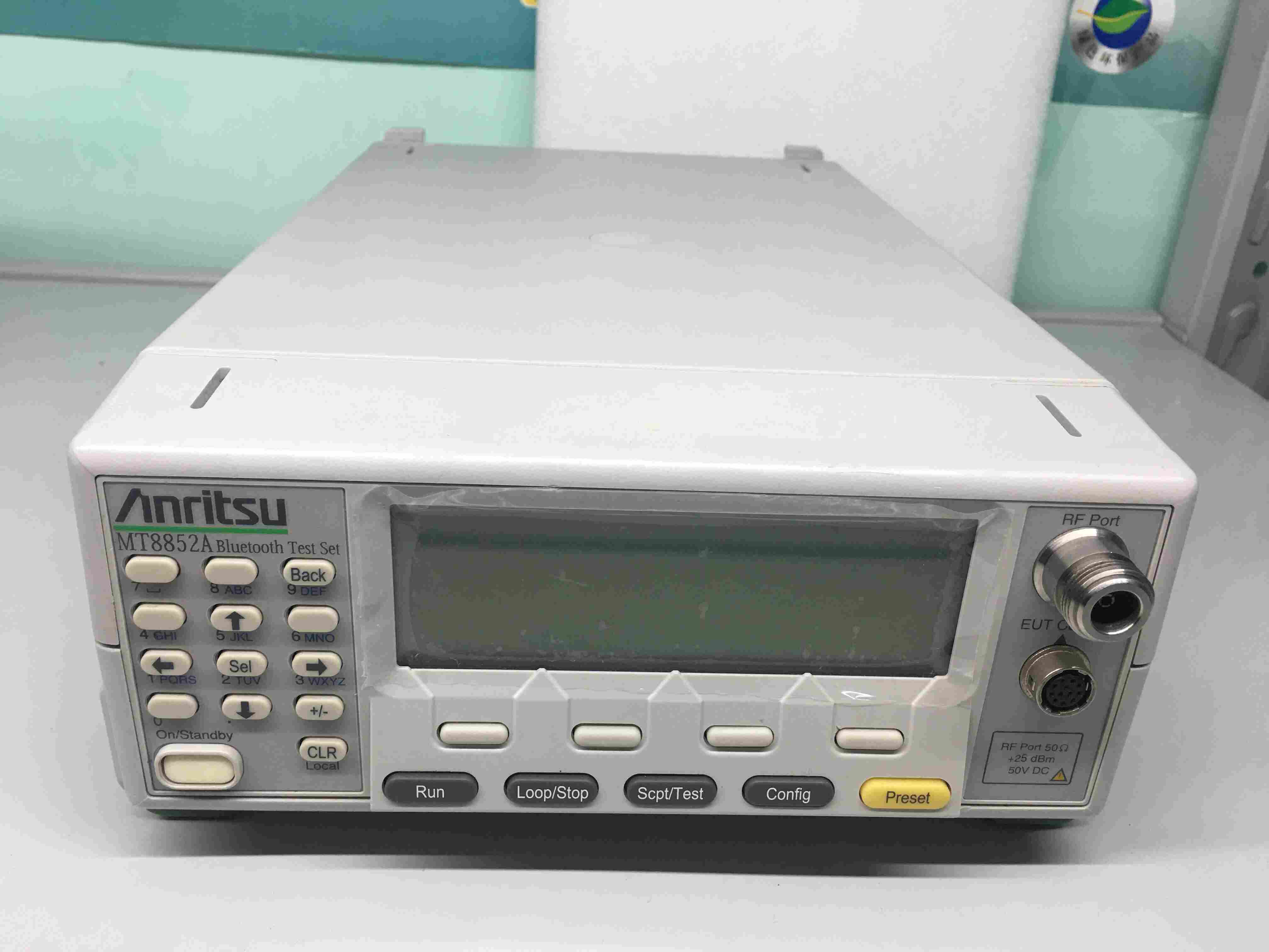 Anritsu MT8852A 是安立公司推出的蓝牙测试装置。用于移动PC,移动电话和其它便携式设备。用来测量蓝牙模块和蓝牙产品的无线电能。支持所有的3种信号编解码器的空气介面 (u法律, A法则和 CVSD)并达到三个 SCO 音响波道上。