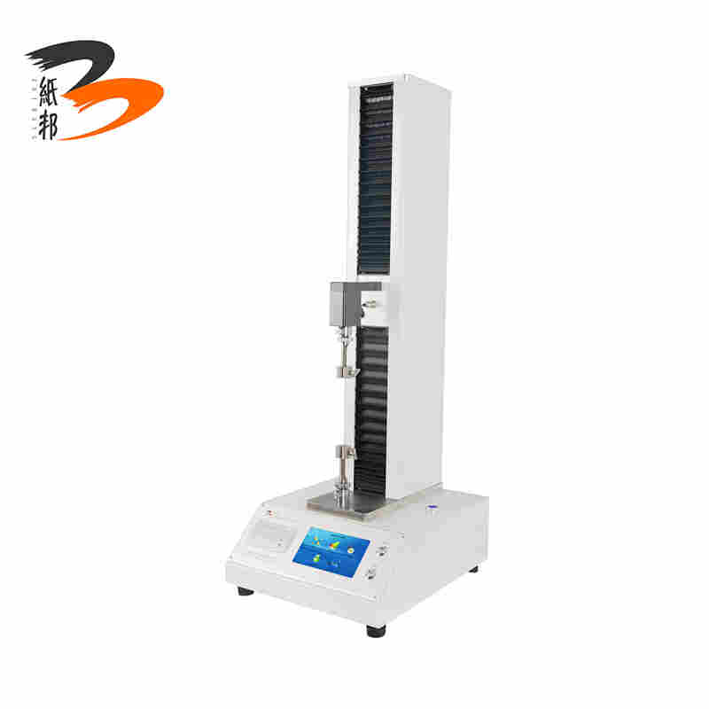 仪器采用立式、多柱结构,夹头间的距离可在一定的范围内进行调整.。试验时实时显示拉伸时间、负荷张力。试样断裂时即显示抗张力、抗张强度值、抗张指数、裂断长、伸长率、抗张能量吸收指数、抗张能量吸收值和裂断时拉伸时间,并可显示抗张曲线。在拉伸一组试样后,又能方便地用按键,直接显示和打印出各测定参数的平均值、标准偏差和变异系数。