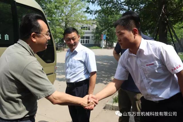 2017年6月25日上午兖州区委书记王宏伟一行领导莅临山东万世机械调研考察,山东万世机械公司经理朱军全程陪同。