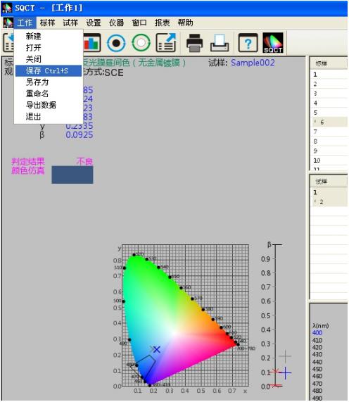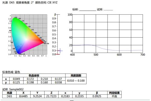 譬如如何判定蓝色试样是否在《GB/T 18833-2012道路交通反光膜样》所规定的蓝色区域内(无金属镀层,昼间反光膜颜色),按照下面的步骤,将依次完成测量和判定。