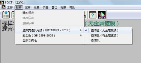 针对国内交通路标使用较多的标准GB/T 18833,SQCT软件将该标准中的标准色域纳入其中,客户只需根据自己需要进行选择即可。