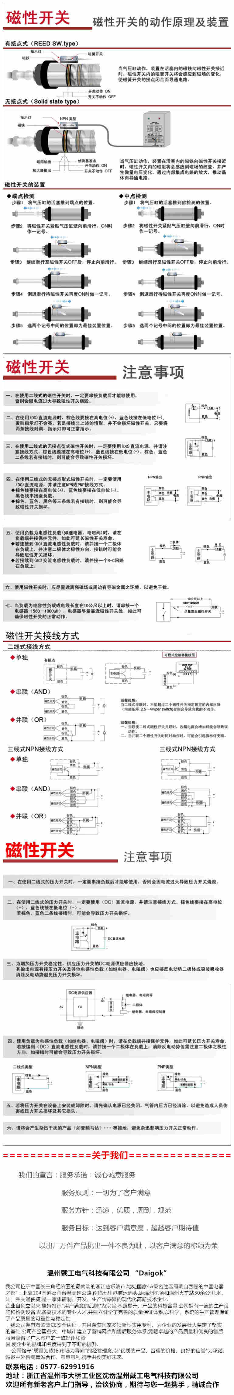 本公司磁性开关DS1-G 可与亚德客CS1-G相互替代使用,干簧管采用美国DOTO公司进口镀金干簧管,使用寿命,响应速度,性能与SMC相当!