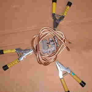 钳式个人保安线的软铜线为国标线,外带同名绝缘皮,满方,做实验合格,接地棒采用环氧树脂材料,全绝缘,机器拉挤成型,对操作手柄加装硅橡胶护套。短路线与接地线采用多股软铜线绞合而成,并外覆柔软、耐高温的透明绝缘护层,可以防止使用中对接地铜线的磨损,确保作业人员在操作中的安全。接线鼻和汇流夹与接地铜线及外护套采用压接新工艺,软连接可有效地防止使用时连接处铜线断股,提高了钳式个人保安线的可靠性和使用寿命。