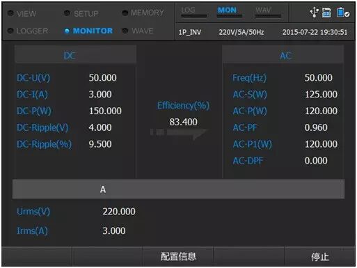 由于逆变器自身也会消耗电能,所以逆变器存在的一个天然属性就是它无法将直流电能的完全转换成交流。但是,转换效率却是我们判断一个逆变器好坏的一个标准。在GB/T 20321标准中规定:在额定输出状态下,其输出容量不大于2kVA的逆变器,效率应大于或等于80%;大于2kVA的逆变器,效率应大于或等于85%。如下图,即对逆变器效率的实测。