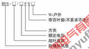 二、 BFS-400-180W壁式防爆排风扇220V转速1450m3/h型号含义