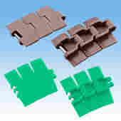 曲线输送用塑料顶板链的标准类型。TTP的曲线输送用。(*小侧弯半径600mm)