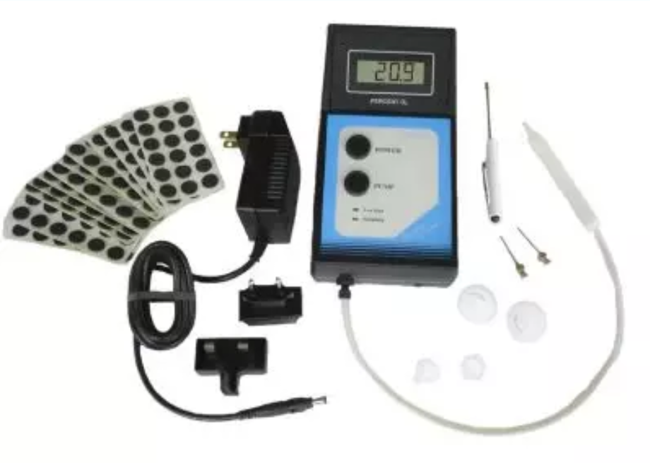 Model 901顶空残氧分析仪,食品包装残氧测定仪器:方便食品,奶粉测试,面包,咖啡等气调包装的顶空残氧分析测试应用。范围 0.1 — 氧气 ; 内置的取样泵,抽样探杆 ,长寿命传感器,方便。带充电功能,可以使用充电电池。