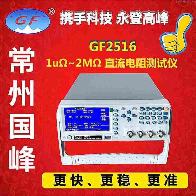 ■ GF2516是一款高精度直流电阻测试仪。可用于检测线圈、电感、变压器、电机、继电器接触电阻、接插件电阻、保险丝、线缆电阻、印制板线电阻、焊孔电阻、导电膜、金属探伤等。是一种高速度、高精度、高性能的低电阻测试仪,可满足生产线质量保证、进货检验及实验室测量要求,也适用于自动化设备测试。