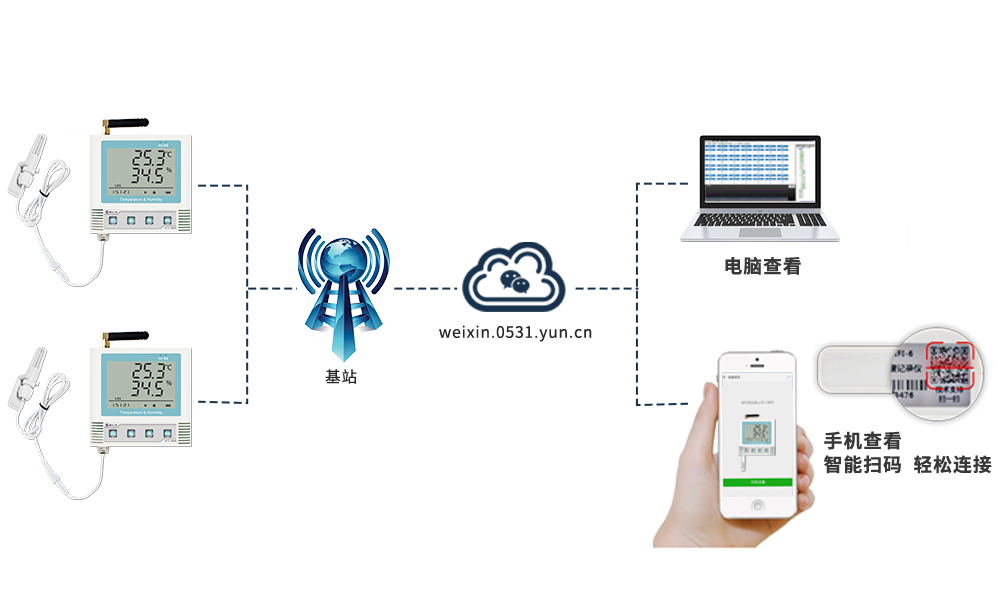 设备可连接我司提供的免费云平台、物联网云平台,扫码一键绑定,手机随时查看实时数据。