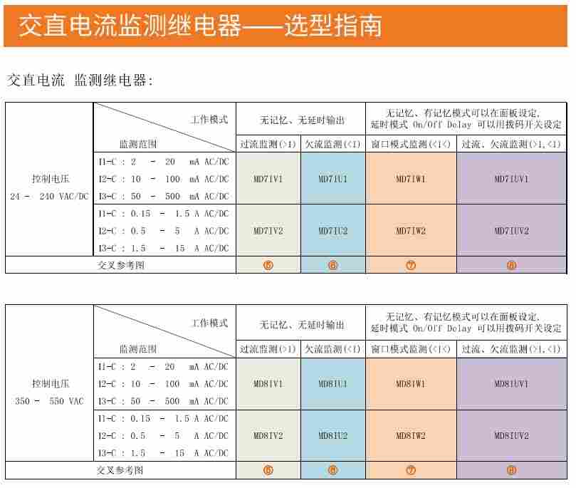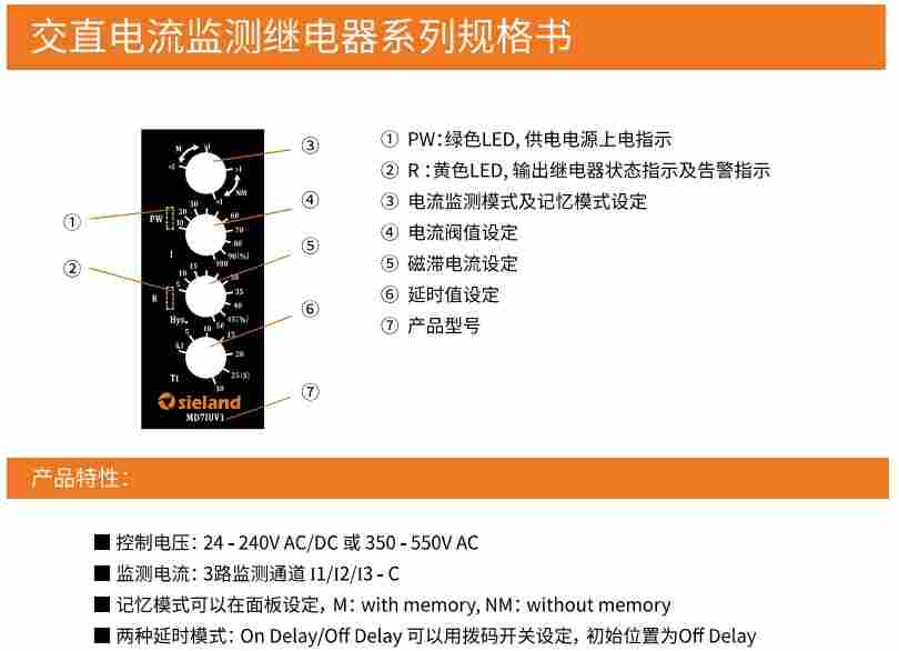 Sieland/讯琅 MD7/MD8 系列 交直电流监测继电器 (3路监测通道) 可以替代下列型号: