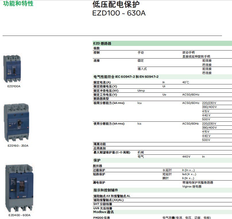 用于交流50Hz和60Hz,额定工作电压至690V,额定工作电流从6A至1250A的配电网络电路中,用来分配电能和保护线路及电源设备免受过