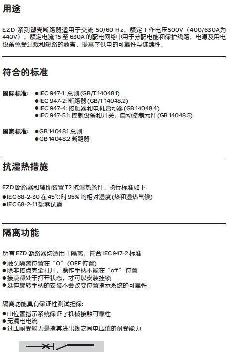 C65 系列断路器符合IEC60947-2/GB14048?2 中带有隔离功能断路器的补充规定,充分对隔离电器的各项要求: