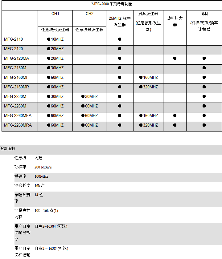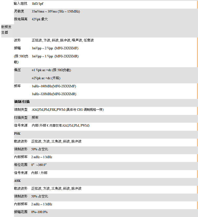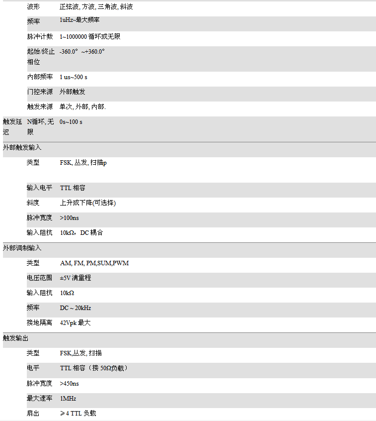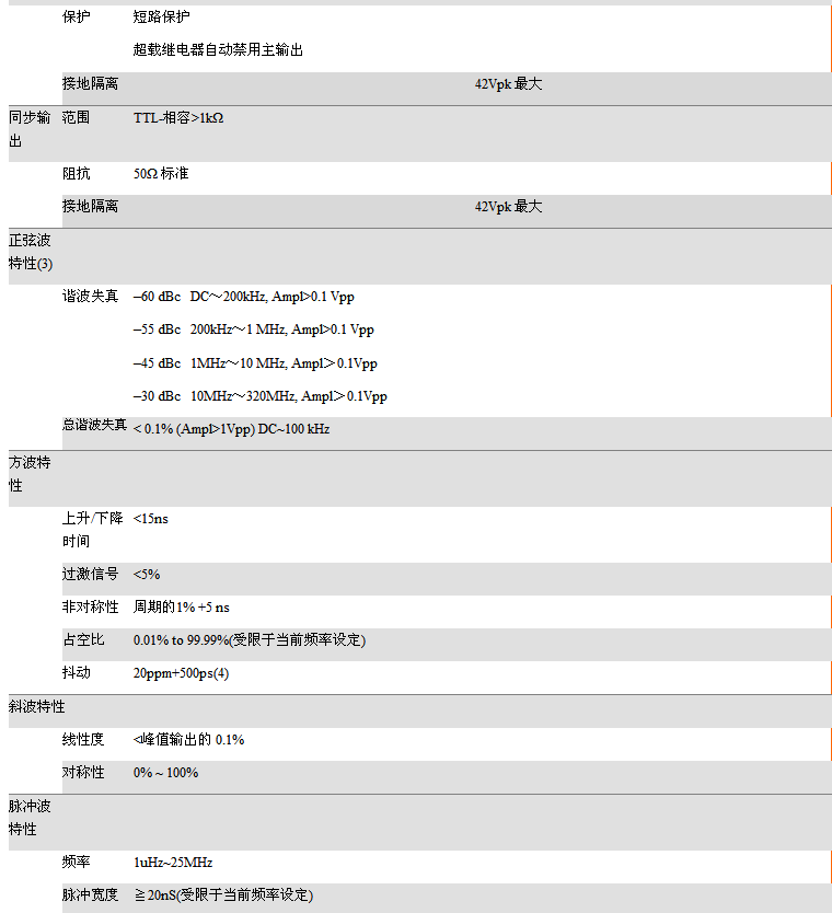 • 可同步AFG功能通道频率范围为1uHz至10/20/30/60MHz.