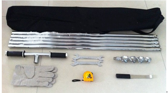 1:将T型手柄和一只延长杆,螺旋钻头,用板手连接好。