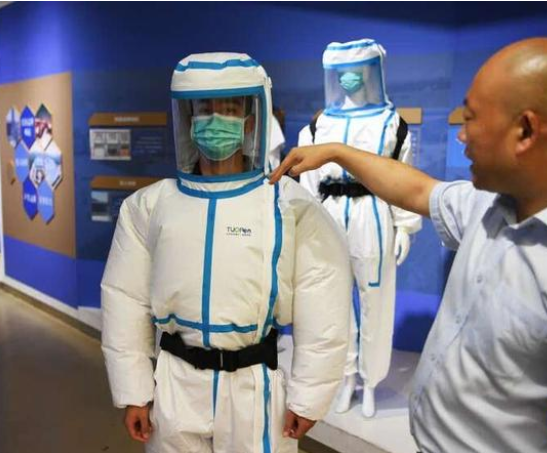 普通的防护服身上出汗,出汗后防护服就会贴在身上,汗排不出来,医护人员酷热难耐,防护服上装上空调送风机后,防护服里边有一个风循环,在天气特别热的情况下,就算身上出一些汗水,里面的空调送风,会把贴身的汗水给瞬间蒸发,里边贴身的衣物不会湿透贴在身上,为医护人员提供一个良好的工作环境和体验。
